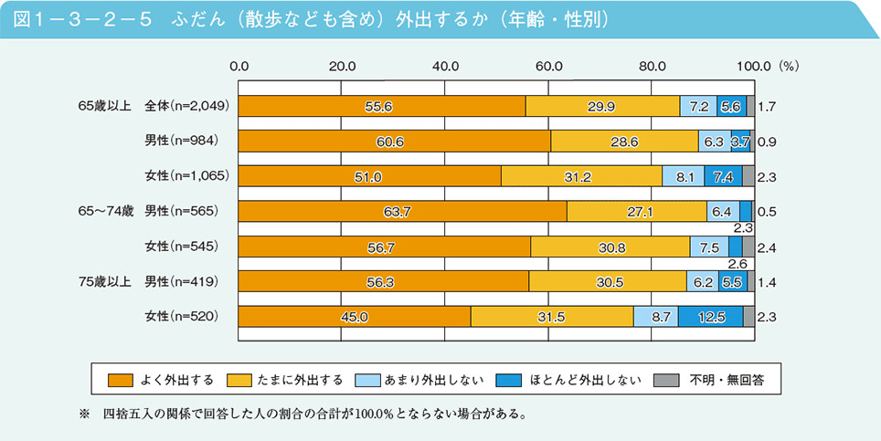 外出頻度が多い人ほど充実した生活をしている図です。